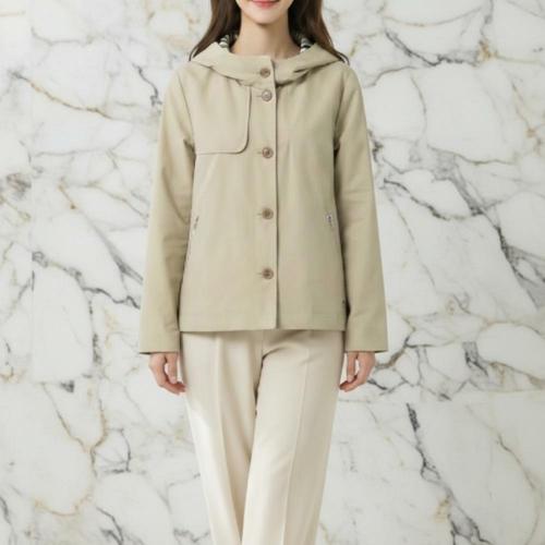 |KDJ6D6D|여성 루즈핏 체크 안감 후드 버튼업 면혼합 자켓