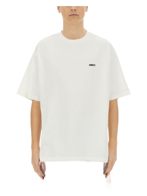 오베이 화이트 루즈 핏 코튼 아이콘 페이스 티셔츠 167924099 P