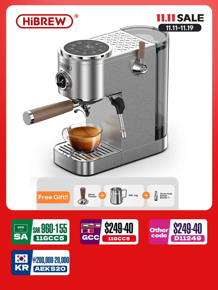 HiBREW 20Bar 반자동 에스프레소 커피 머신 온도 조절 가능 콜드/핫 슈퍼 슬림 커피 메이커 카푸치노 H10B