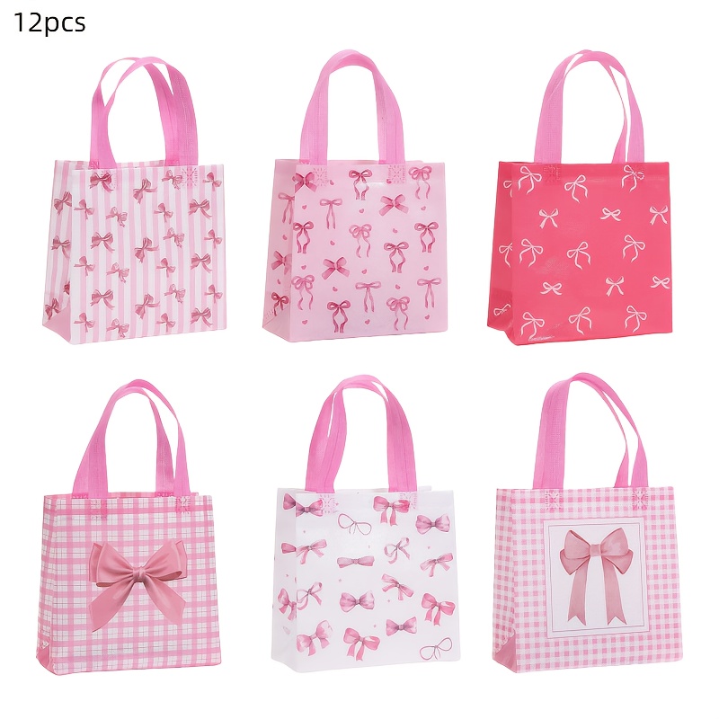 TEMU 12/24개 핑크 리본 테마 파티 선물 가방, 달콤한 리본 디자인의 부직포 소재, 결혼식, 여아 파티, 애프터눈 티, 브라이덜 샤워, 어머니날 등에 완벽—소녀들을 위한 이상적인 선물