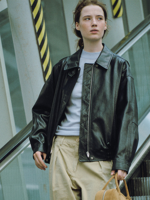 [오스트카카] 비건 레더 블루종 점퍼 블랙