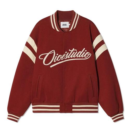 [오아이오아이컬렉션]웨이비 로고 패치 스타디움 자켓_브릭