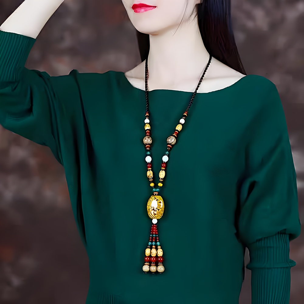 TEMU 1개 캐주얼 빈티지 기하학적 라운드 블랙 코드 펜던트 목걸이, 데일리 다용도, 휴가 선물 및 여행 착용에 적합
