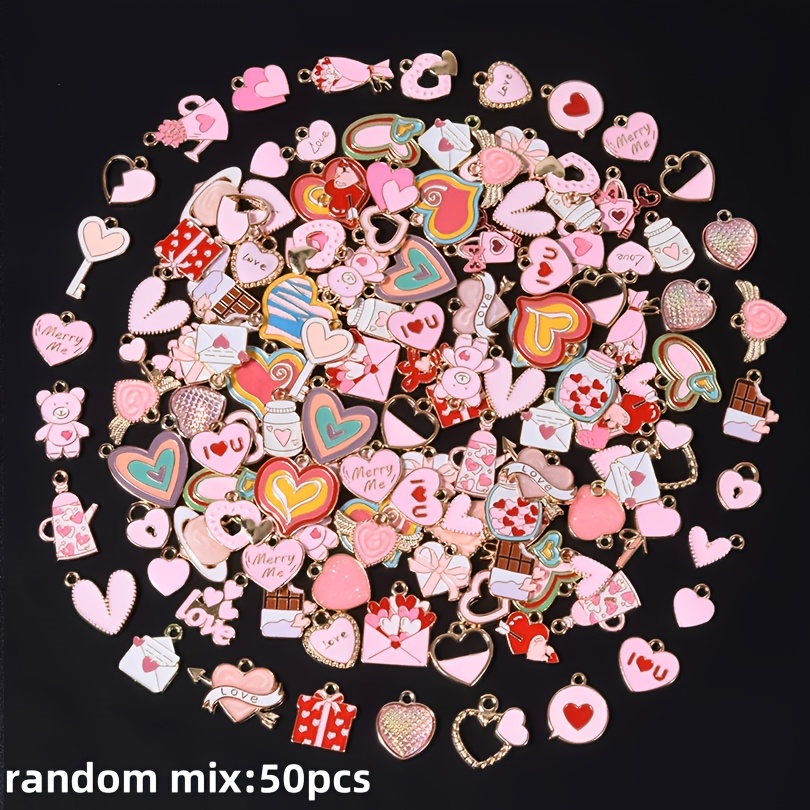 TEMU /100개 발렌타인데이 카툰 귀여운 로맨틱 핑크 하트 선물 초콜릿 복숭아 하트 랜덤 혼합 드립 오일 참 다양한 에나멜 목걸이 팔찌 귀걸이 펜던트 DIY 주얼리 만들기 공예용 펜던트 다양한 스타일 랜덤 혼합 배송