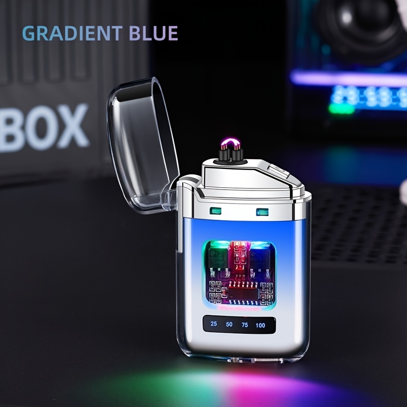 TEMU 5가지 컬러, 패셔너블 그라데이션 듀얼 아크 라이터, 펄스 라이터, 방풍 라이터, LED 전원 디스플레이, 무화염, 컴팩트 휴대용 라이터, USB 충전, 야외 캠핑, 피크닉, 여행, 아로마테라피, 생존, 비상용, 데이 선물, 생일 선물에 완벽