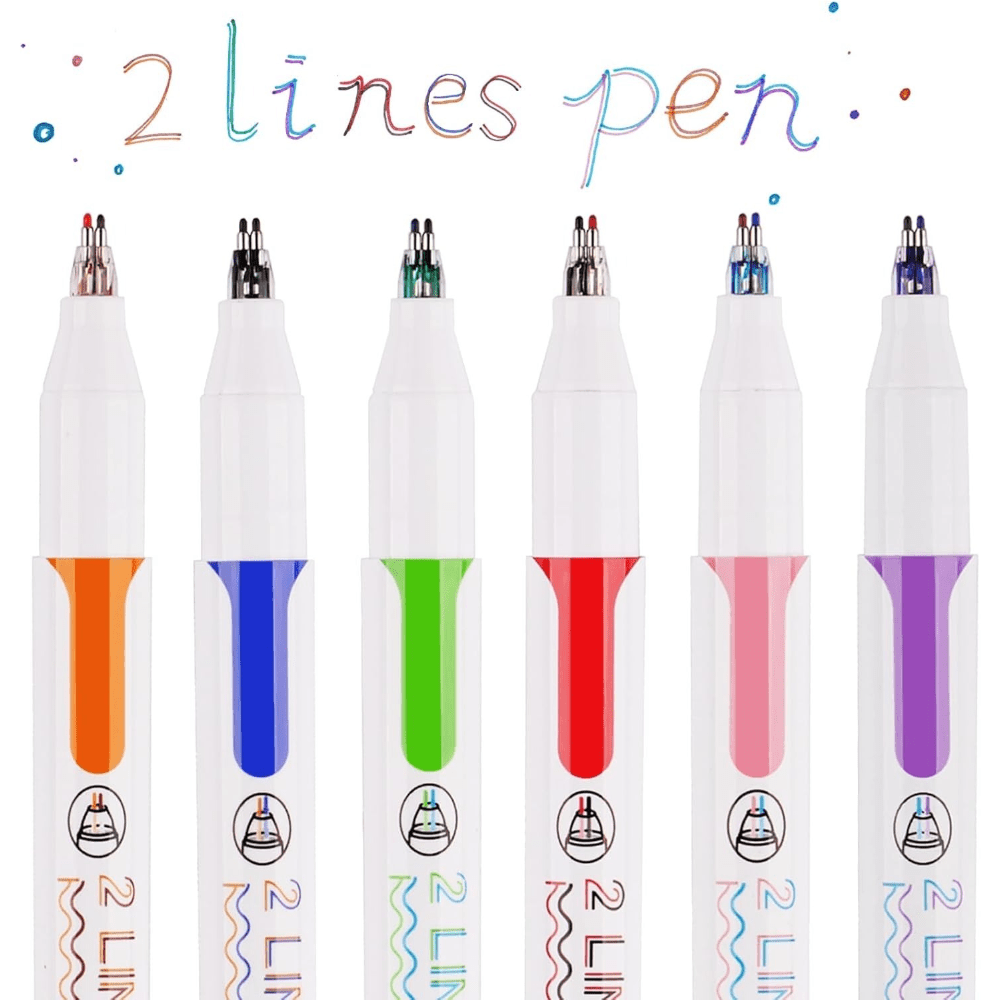 TEMU 사무용품, 6/12개 듀얼팁 펜, 다양한 색상, 아웃라인 펜, 이중색 펜, 3D 드로잉 펜, 3D 쓰기 펜, 더블 라인 마커, 미술 필수품, 개학 시즌, 학교 및 사무실 사용