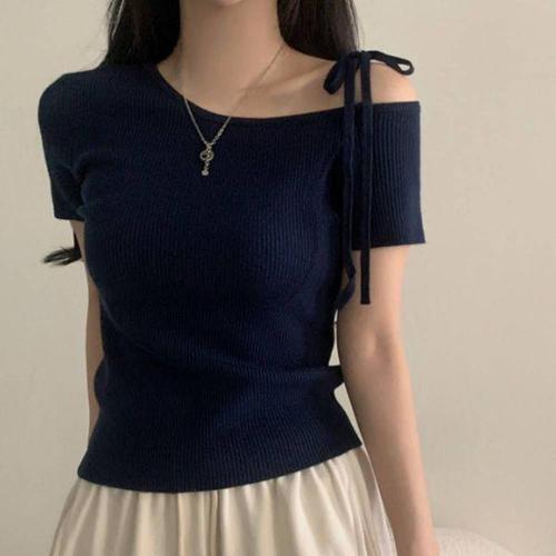 [에이치플러스몰]여성 반팔 니트 오프숄더 언발 여름 DHH-E91