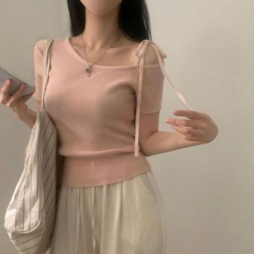 [에이치플러스몰]숏기장 오프숄더 니트티 DJJ1017