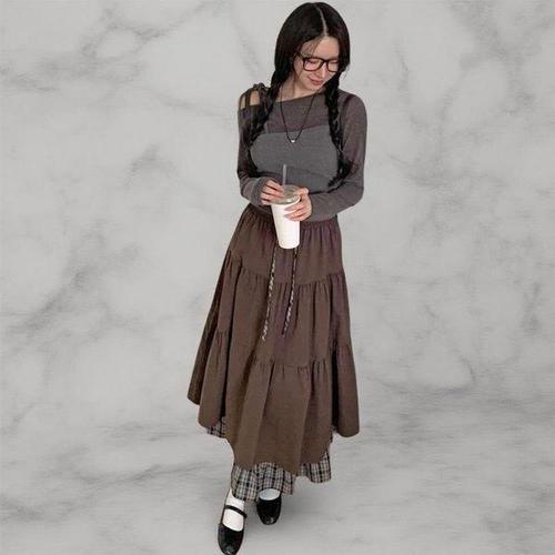 [옷자락]여성 레이어드 골지 오프숄더 긴팔 니트
