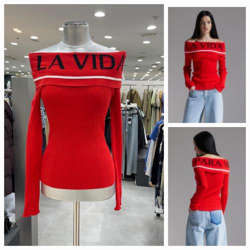 갤러리아_(23가을) 레터링 자카드 오프숄더 골지 니트(EP3KL860)