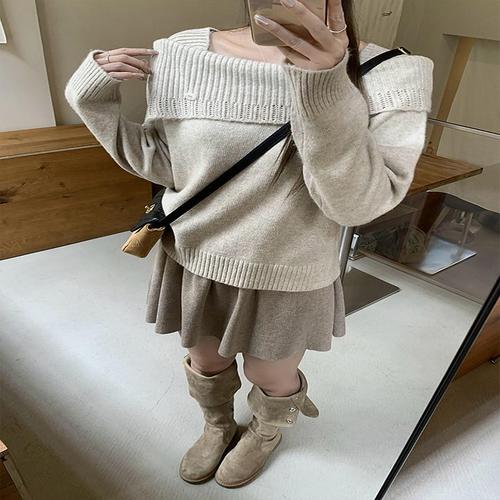 [모어오브]레이디 오프숄더 니트 긴팔 스웨터 탑