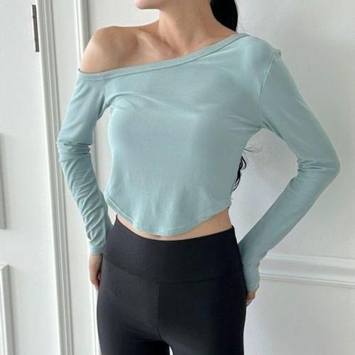 [에이치플러스몰]베리즈 원오프숄더심플 롱슬리브티