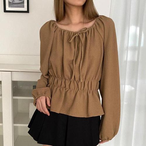[옷자락] 여자 셔링 오프숄더 리본 프릴 가을데이트룩 블라우스