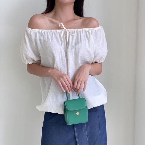 여자 투웨이 리본 오프숄더 퍼프 밴딩 블라우스