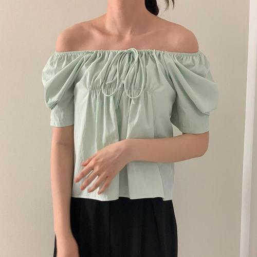 여자 리본 스트링 오프숄더 퍼프 블라우스