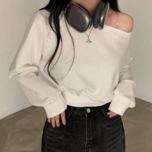 [에이치플러스몰]여성 오프숄더 크롭 맨투맨 티셔츠 1P 언발 티셔츠