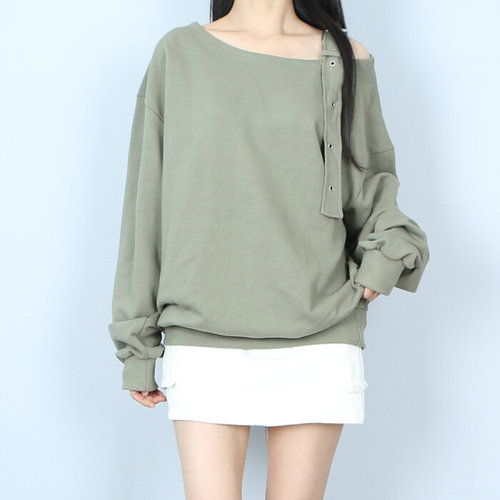 파라노말샵 / 무지 버클 오프숄더 맨투맨 (파라노말샵)