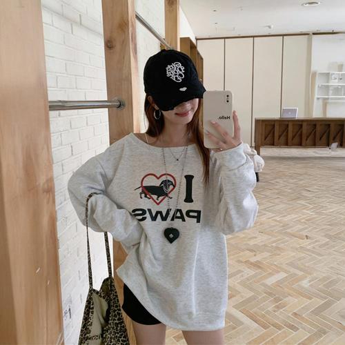 여자 오프숄더 맨투맨 루즈핏 꾸안꾸 데일리룩