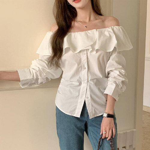 플로렌 / 여성용 화이트 오프숄더 블라우스