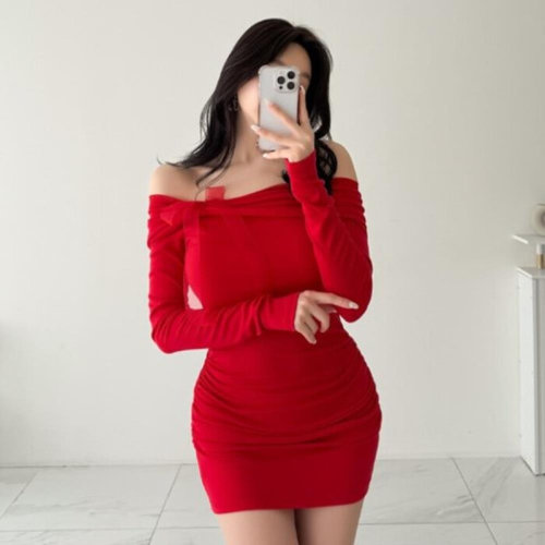 [옷자락]여성 오프숄더 슬림 긴팔 미니 파티 원피스