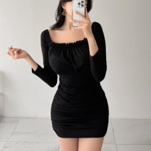 [옷자락]여성용 오프숄더 슬림 미니 원피스 사이드 셔링 디자인
