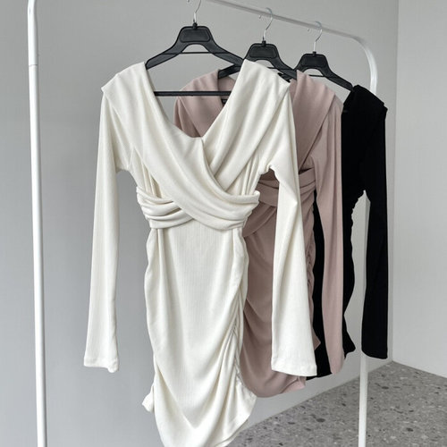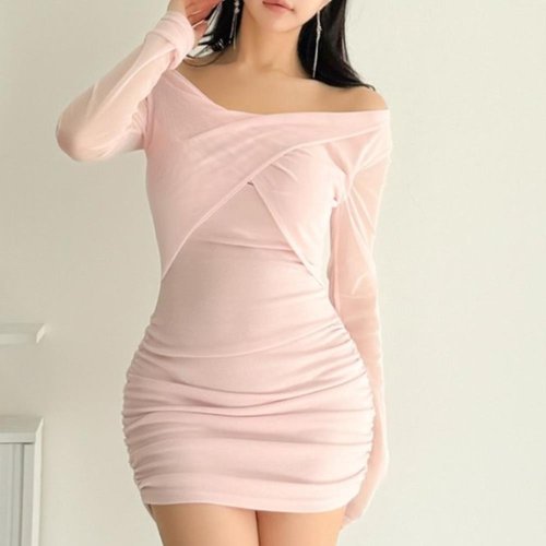 엑스자 랩디자인 오프숄더 원피스 슬림한 라인 미니