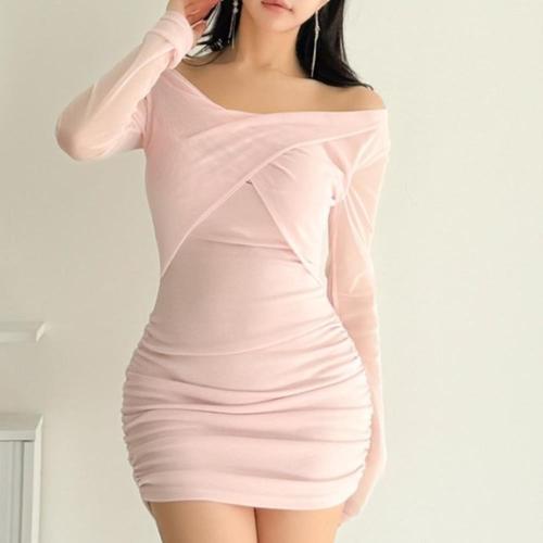 [옷자락]여성 랩 오프숄더 시스루 원피스