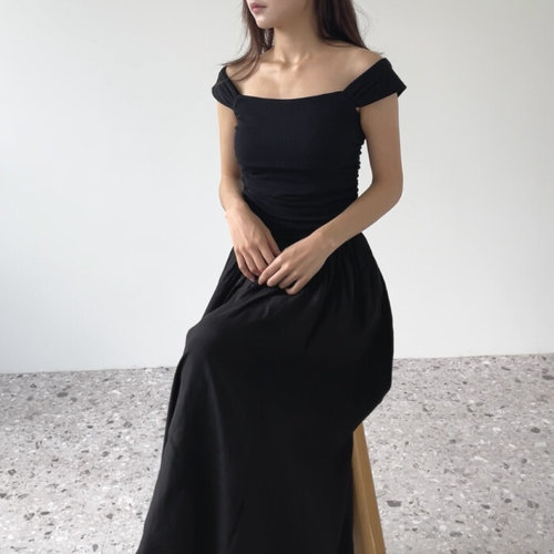 [GGPX] 핀턱 오프숄더 롱 원피스(GODOW035D)