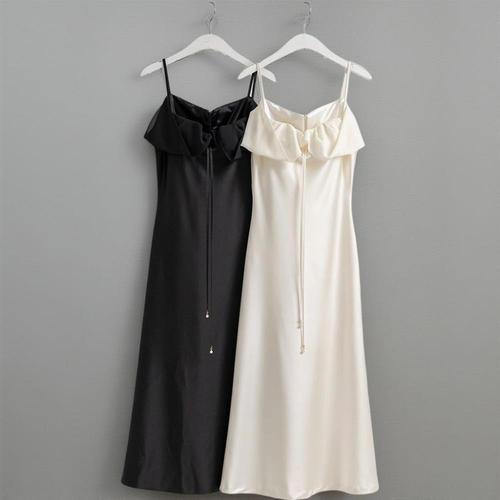 [신상오픈런]여성용 오프숄더 롱원피스 가을 머메이드 스타일 리본 장식 스몰웨딩용