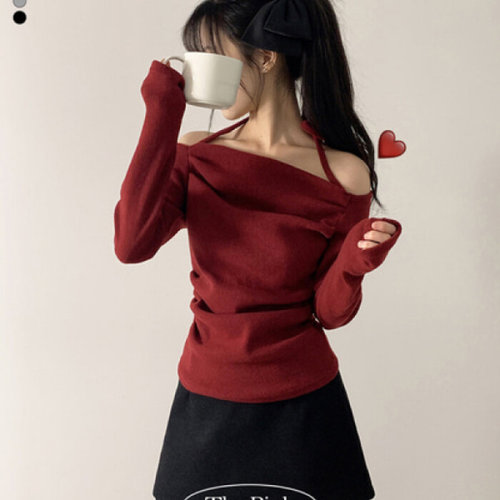 라라홀리 러블리 홀터넥 오프숄더 슬림 골지 니트티