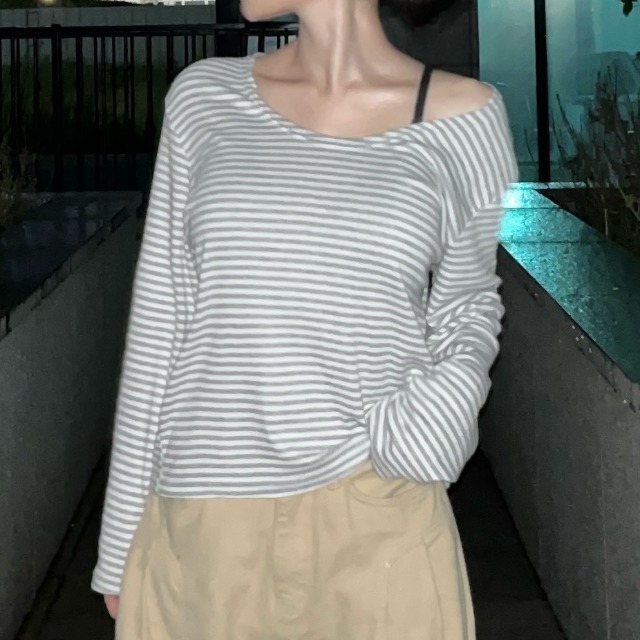 보더 오프숄더 티셔츠