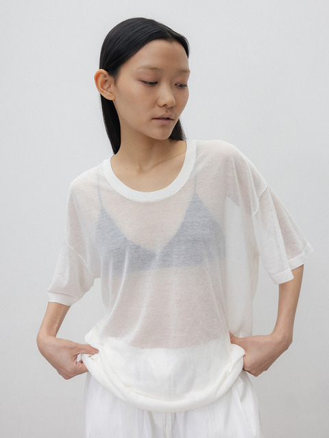 [우마뭉] 린넨 비스코스 시어 하프 슬리브 풀오버 오프 화이트