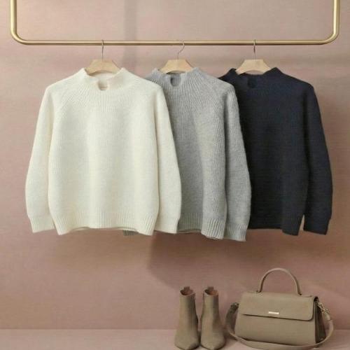 [옷자락][다잇템] 여자 컷오프 빅사이즈 폴라 FW 라글란 무채색 니트_23961197_588870