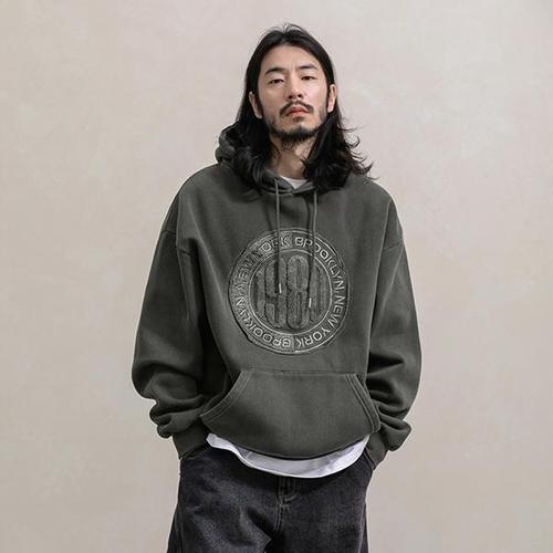 [러기드하우스]러기드하우스 피그먼트 컷오프 아플리케 기모 후드티 2컬러