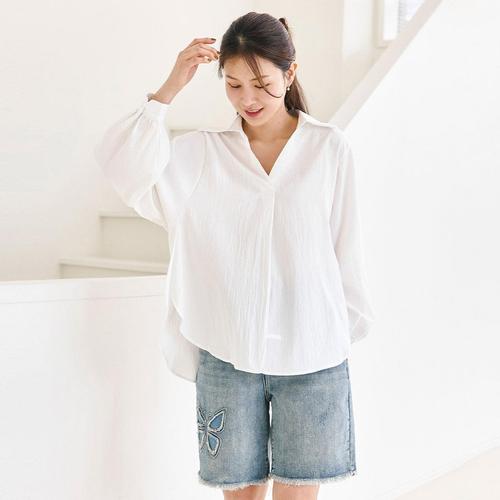 [WPBG][1+1] 언발 슬릿 오픈카라 퍼프소매 블라우스 셔츠_4color