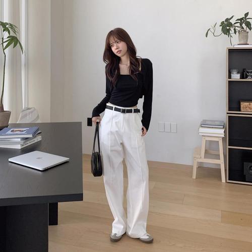 [다잇템]여성용 핀턱 면원단 정장바지 넓은 오피스룩