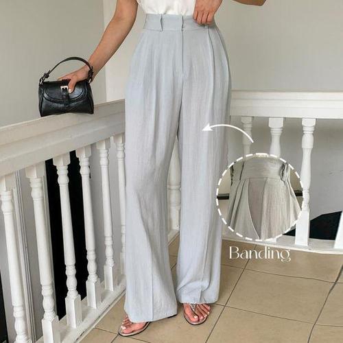 [옷자락]여자 여름 오피스룩 핀턱 뒷밴딩 린넨 슬랙스