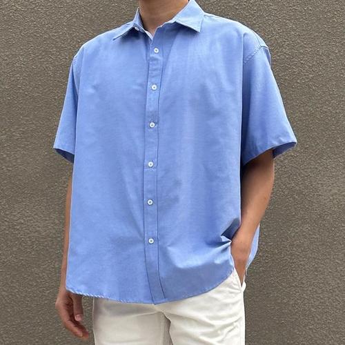 [에이치플러스몰]솔리드 옥스포드 반팔셔츠 오버핏 무지 데일리 남방