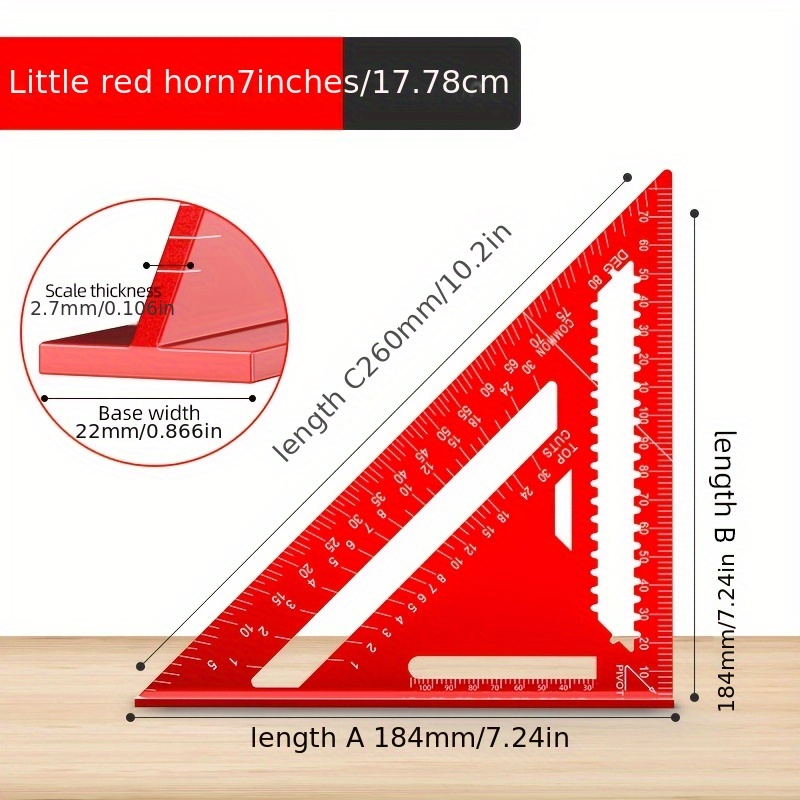 TEMU 12인치 알루미늄 합금 삼각형 측정 테이프 - 7인치 다각형 목공 및 목공 규칙, 90도 직각, 녹방 방지, 미끄럼 방지 그립, 정밀 스크루 및 나일, 목공 도구, 세련된 금속 마감, 내구성 구조|줄자