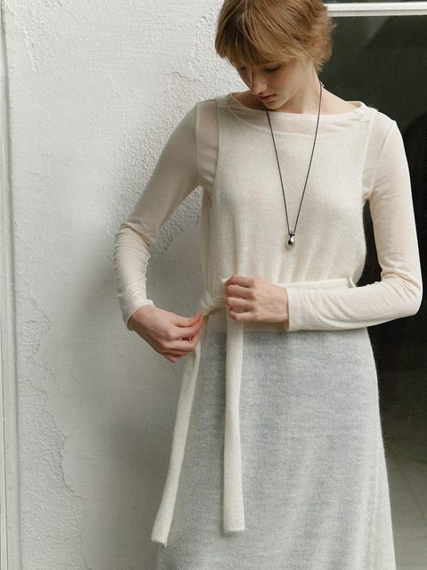 여성 홀가먼트 캐시미어 울 비체 라운드 니트 롱원피스
