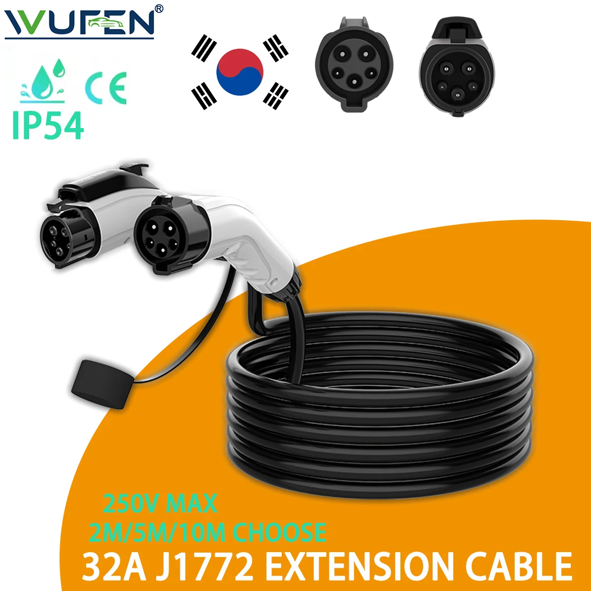 WUFEN 32A 2M/5M/10M 전기 자동차 J1772 연장 코드 충전 케이블 SAE J1772 암 플러그 전기 자동차 충전용 유형 1 수 PLug