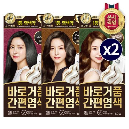 리엔 흑모비책 바로거품 간편 염색약 80g x 2개 (흑색/흑갈색/자연갈색 택1)