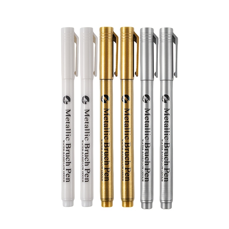 TEMU NVGEMY 메탈릭 마커, 유연한 브러쉬 팁 (1-4mm) | 빠른 건조, 완전한 커버리지 & 화이트, 골드, 실버의 생생한 메탈릭 마감 | 캘리그라피, 카드, 공예 및 전문 예술용