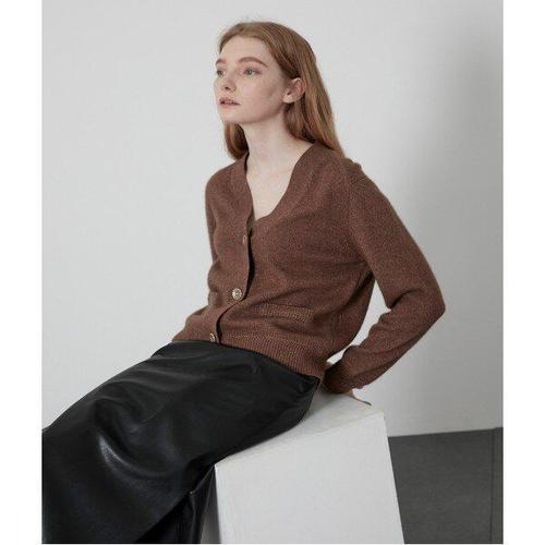 스토리원 여성 리오셀 자개단추 브이넥 울 가디건 WM-SSOT027