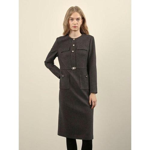 [올리비아로렌]버튼장식 슬림 원피스_VOCOA3W9111