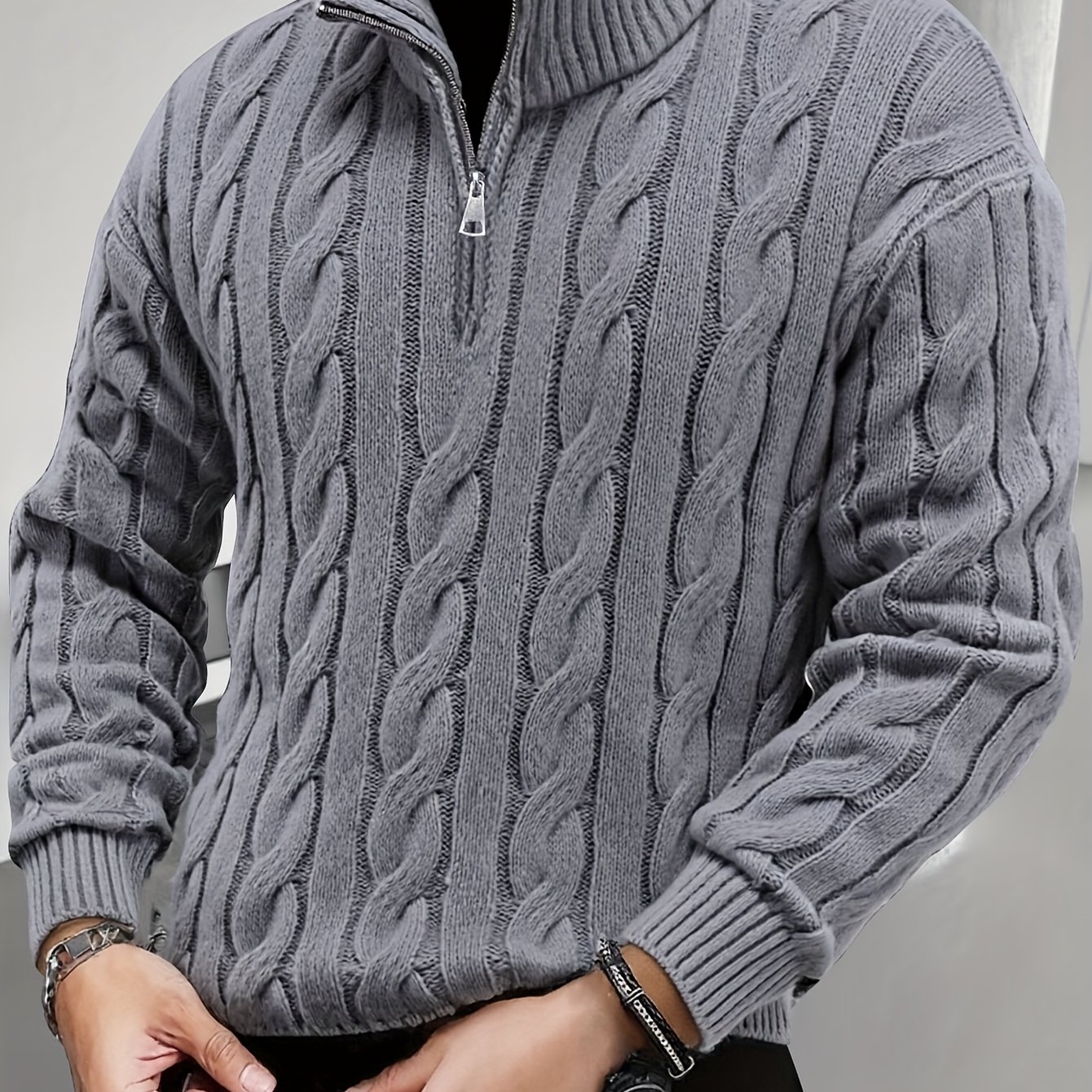 TEMU 반개방형 칼라가 트렌디한 남성용 스웨터입니다. 가을, 겨울철 야외 캐주얼 웨어에 완벽합니다.
