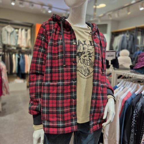 [올포유]여성-가볍고 부드러운 촉감의 폴리혼방 소재/얇은 패딩 충전재로 보온성이 좋은 퀼팅 체크 후드 ..