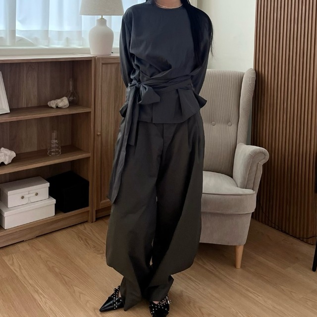 정상가:79,000원|핀턱 오버 와이드 베이직 벨티드 슬랙스 팬츠 (XO3TA006L0)