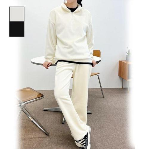 [모노무드]LMO 레이디스 기모안감 이너 시즌 하프집업 티셔츠 골덴 와이드핏 하의투피스
