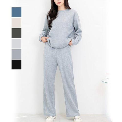 여성 투피스 니트 세트 랩 상의 와이드팬츠